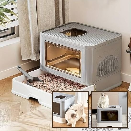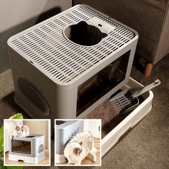 Bac litière chat confortable et ergonomique pour intérieur moderne